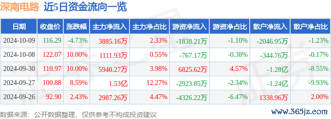 10月9日的资金流向数据方面,主力资金净流入3885.16万元,占总成交额2.33%,游资资金净流出1838.21万元,占总成交额1.1%,散户资金净流出2046.95万元,占总成交额1.23%。