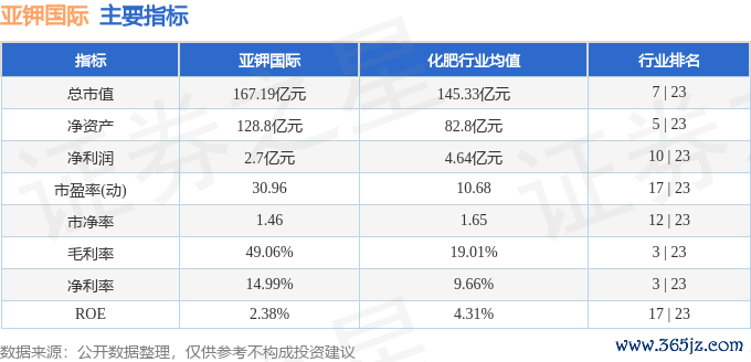 亚钾海外2024年中报显现,公司主营收入16.98亿元,同比下降16.03%;归母净利润2.7亿元,同比下降62.32%;扣非净利润2.68亿元,同比下降62.97%;其中2024年第二季度,公司单季度主营收入10.64亿元,同比下降8.82%;单季度归母净利润1.89亿元,同比下降50.4%;单季度扣非净利润1.87亿元,同比下降51.72%;欠债率23.74%,投资收益444.96万元,财务用度1332.76万元,毛利率49.06%。亚钾海外(000893)主贸易务:钾盐矿开拓、加工,钾肥坐蓐及销售。