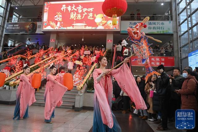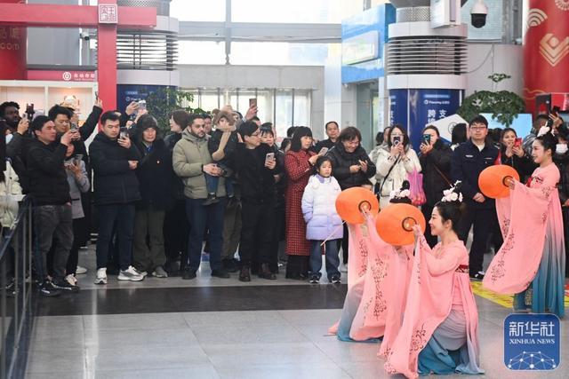 ↑2月9日,不雅众在义乌海外商贸城的大厅不雅看文艺饰演。