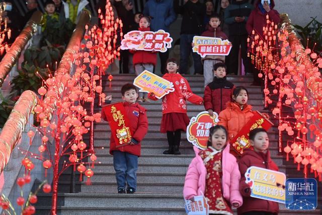 ↑2月9日,小一又友在义乌海外商贸城的大厅进行文艺饰演。